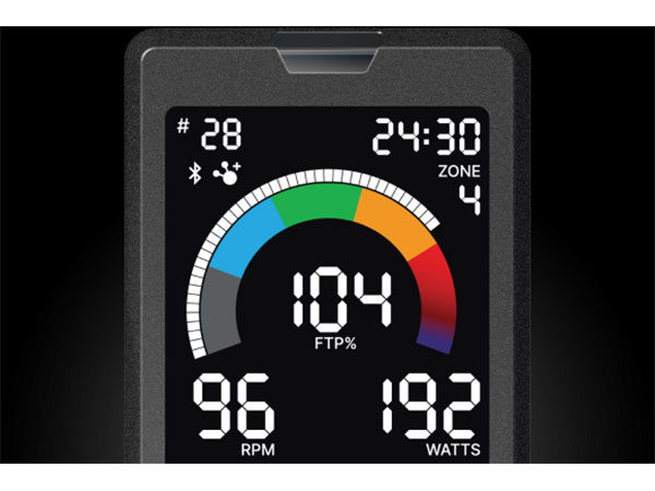 Full-colour feedback to track FTP and HR zones. Customized for five, six, or seven power zones.